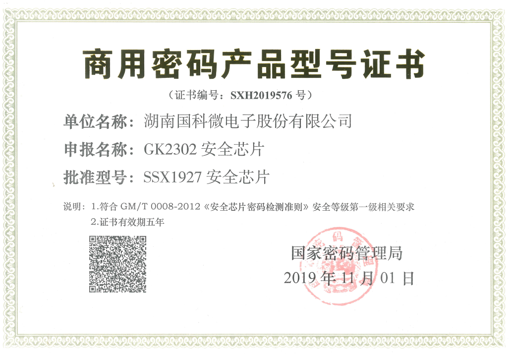 商用密碼產品型號證書GK2302